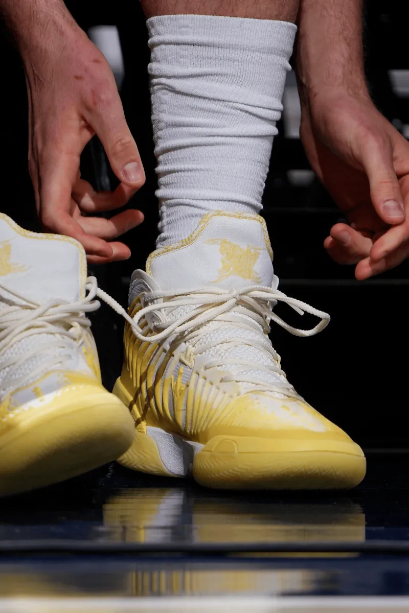 比赛中,约基奇上脚361° Joker2 GT“雏菊”PE。